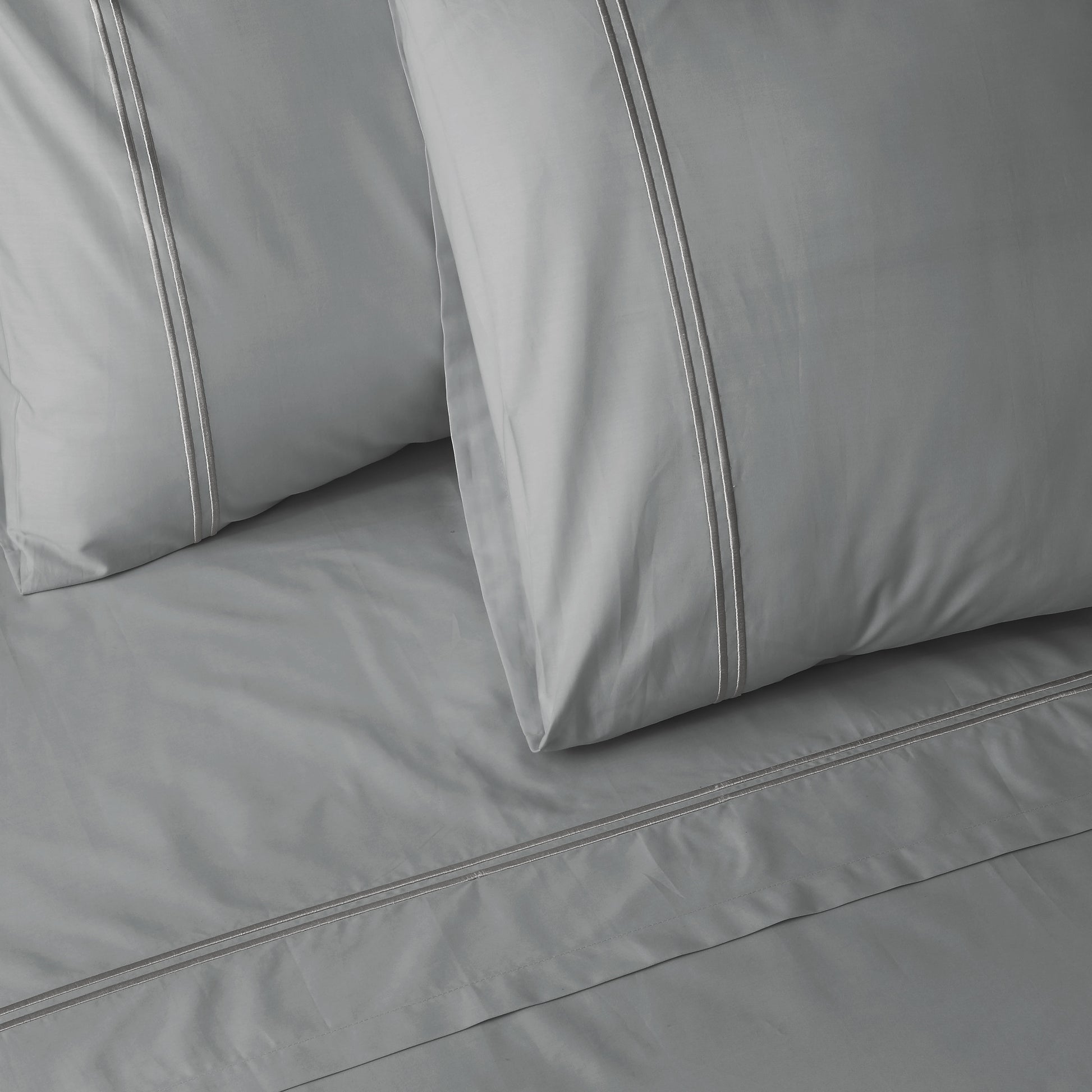 200TC ORGANIC COTTON COLOURED EMBROIDERED SHEET SET - GREYSTONE