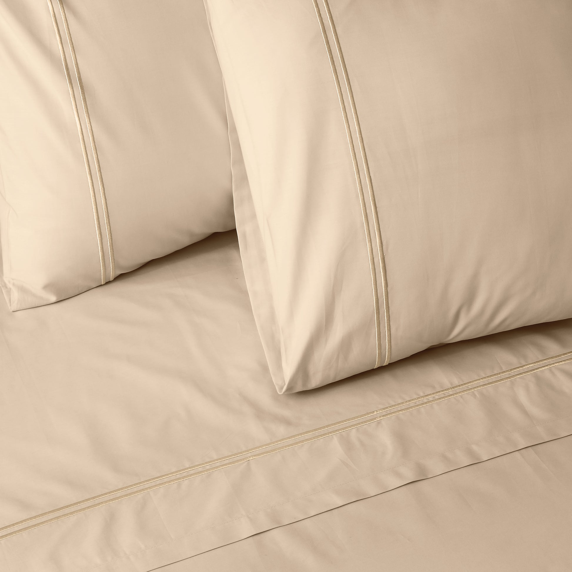 200TC ORGANIC COTTON COLOURED EMBROIDERED SHEET SET - HUMMUS